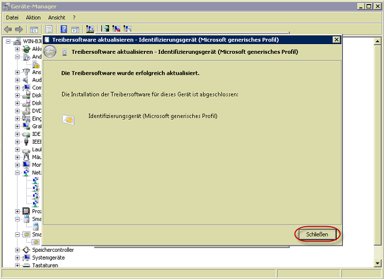Sie erhalten die Rückmeldung, dass die Treibersoftware erfolgreich aktualisiert wurden. Schließen Sie bitte dieses Fenster.