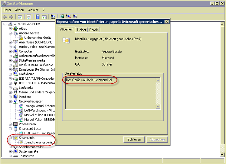 Anschließend funktioniert die SmartCard korrekt. Sie können dann zum weiteren Punkt bei der Einrichtung und Konfiguration von RKSV übergehen.